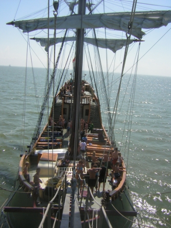 Dort gehen wir am 18.07.08 an Bord des nachgebauten Piratenschiffs “Souverain” und starten unseren Segeltörn übers Ijsselmeer.