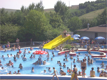 Vom Hüttendorf gibt es einen eigenen Zugang zum Freibad, das wir jederzeit kostenlos nutzen dürfen. Da braucht also nur noch das Wetter mitzuspielen!
